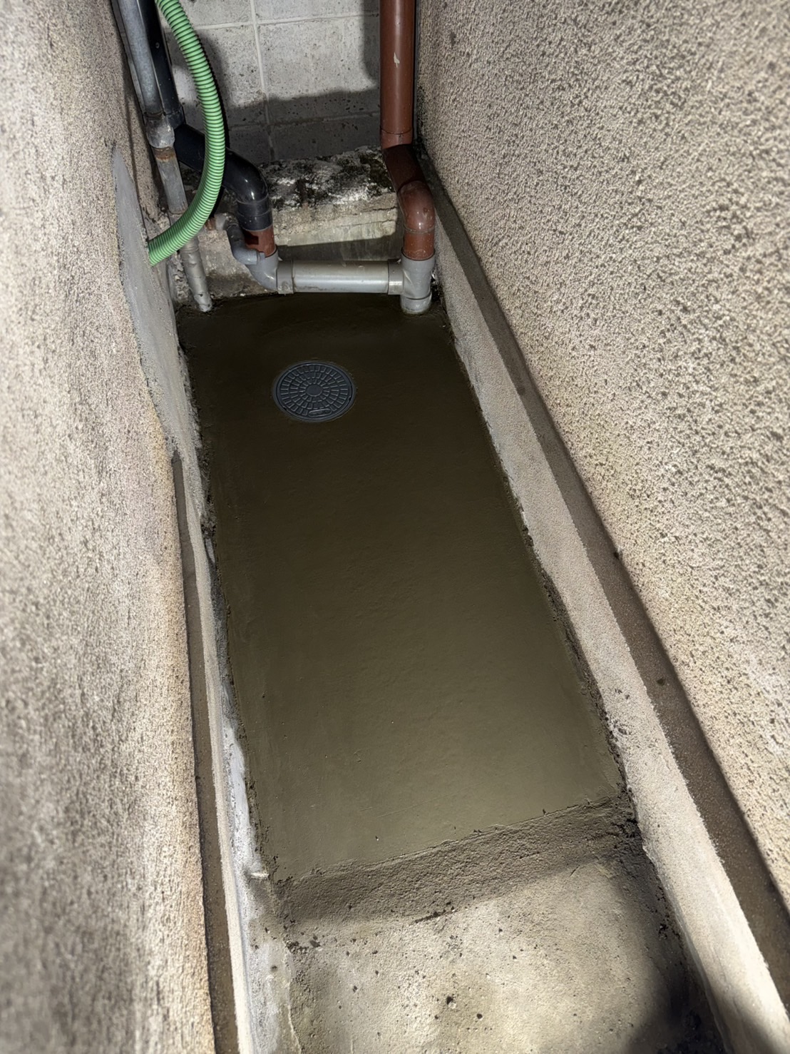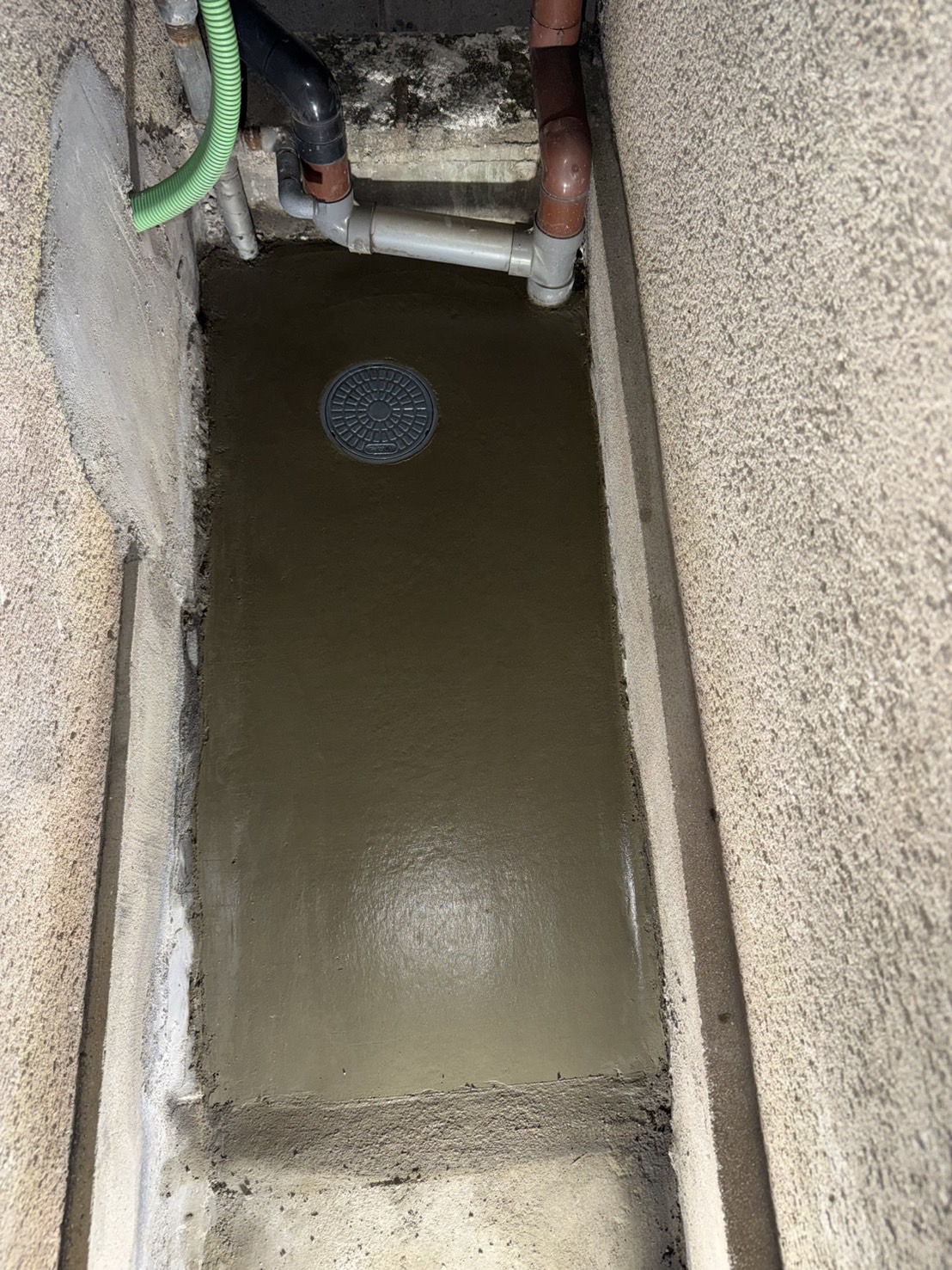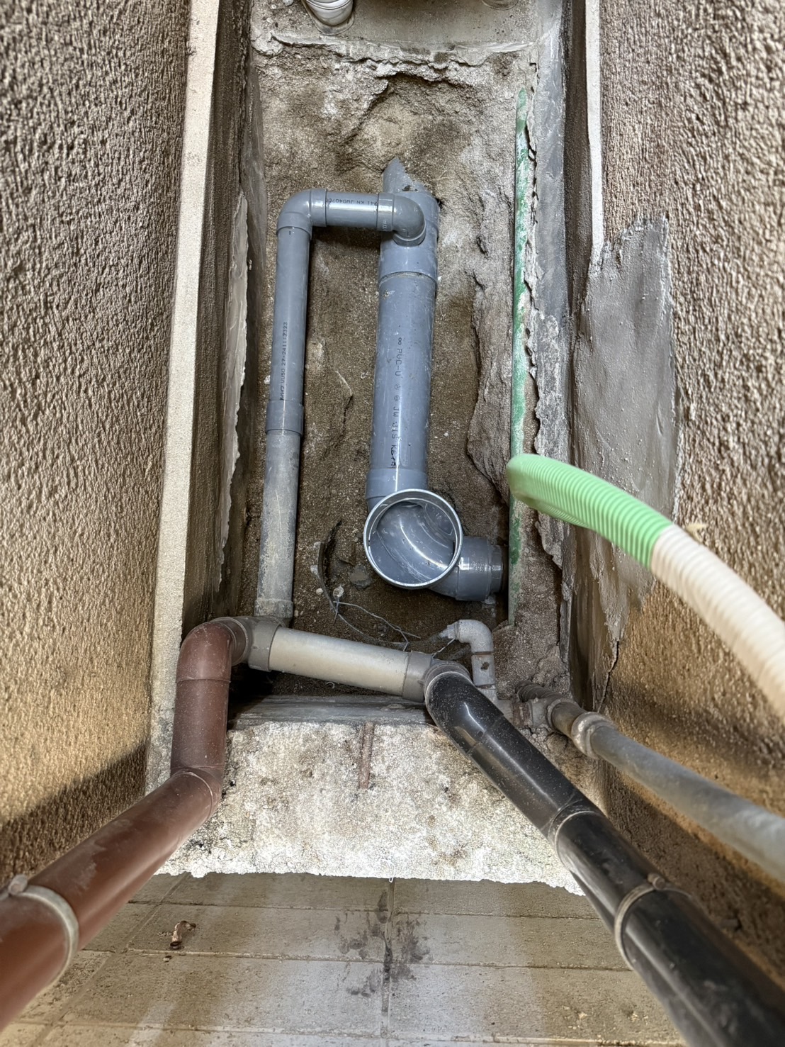 こちらは、大阪府大阪市にて排水桝の改修工事を行いました。既存の排水桝は、経年劣化により汚れの蓄積や流れの悪化が見られる状態でしたが、今回の工事により排水の流れも改善され、安心してご使用いただける環境となりました。