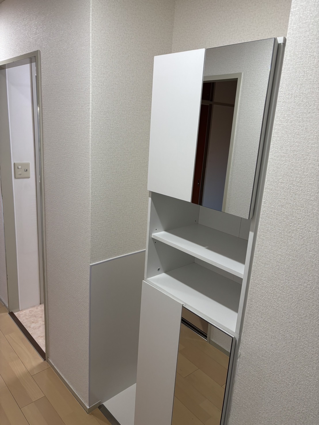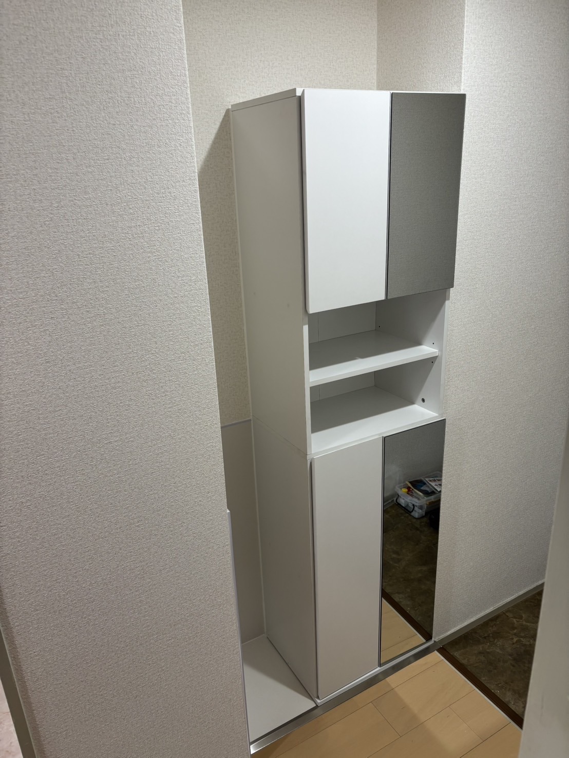 こちらは、大阪府大阪市のM様邸にて、シューズボックス交換工事をさせて頂いた現場のご紹介です。既存のシューズボックスは収納量が少なく、経年劣化も見られたため、新しいものへ交換。収納力がアップし、玄関まわりがすっきりとした印象になりました。毎日の出入りが快適になる仕上がりです。