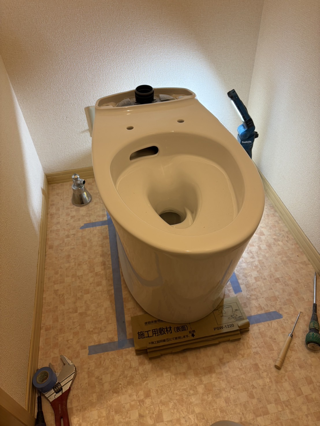 こちらは、和歌山市三葛のN様邸にてトイレ交換をさせて頂いた現場のご紹介です。既存トイレの老朽化に伴い、トイレ交換工事を行いました。今回は排水位置に合わせてフレキシブル管を使用し、しっかりと位置調整を行った上で設置しています。見えない部分もしっかり施工することで、水漏れやトラブルのリスクを防ぎます。交換後は見た目もスッキリし、快適にご使用いただけるようになりました。